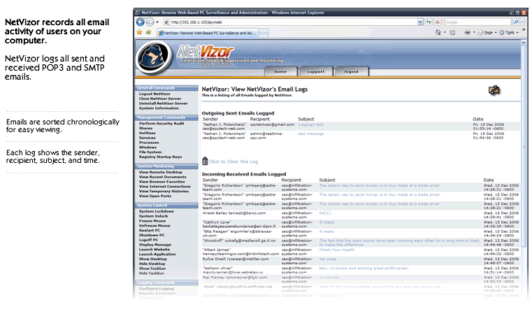 - Emails Sent and Received [view screenshot] - Monitor and log all emails sent and received by users of your computer! All SMTP and POP3 messages are recorded for later viewing.
