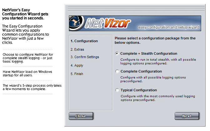 - Easy Configuration Wizard [view screenshot] - Setup NetVizor corporate network monitoring software in seconds with the built in easy configuration wizard!