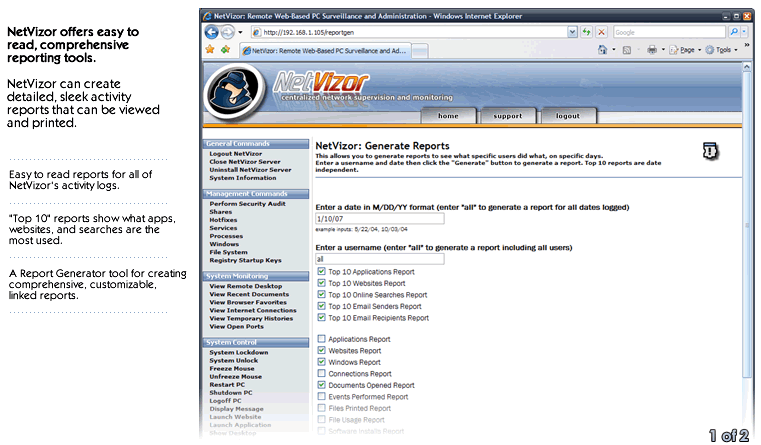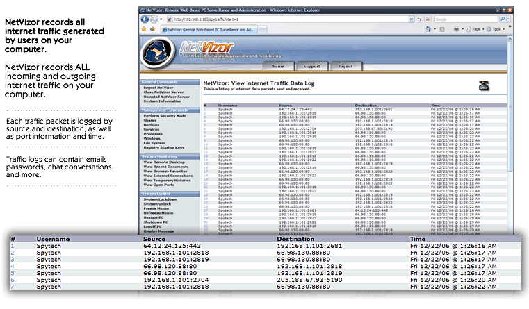Combined with real-time remote surveillance, individual user monitoring, and remote administration capabilities NetVizor is the most comprehensive network monitoring and security solution available!