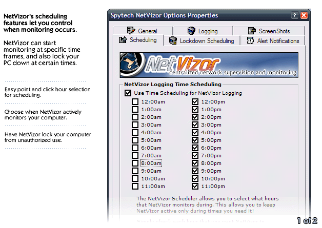 - PC Lockdown Scheduling [view screenshot] - Schedule NetVizor to lock your PC down when you are not around!
