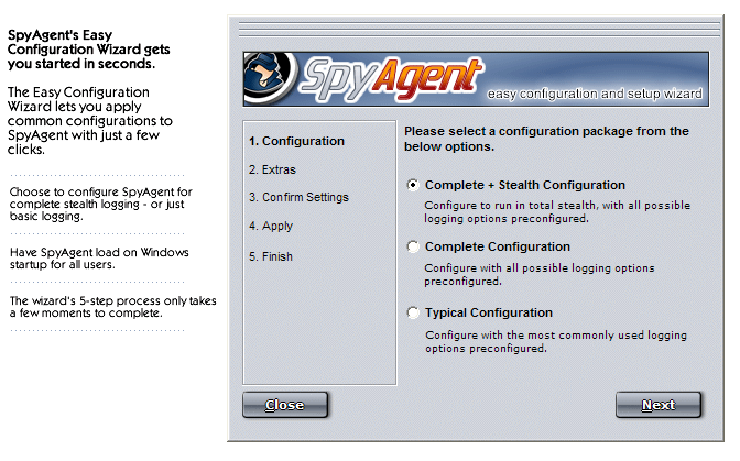 Configuration Wizard [view screenshot] - Setup SpyAgent in seconds with the built in easy configuration wizard!
